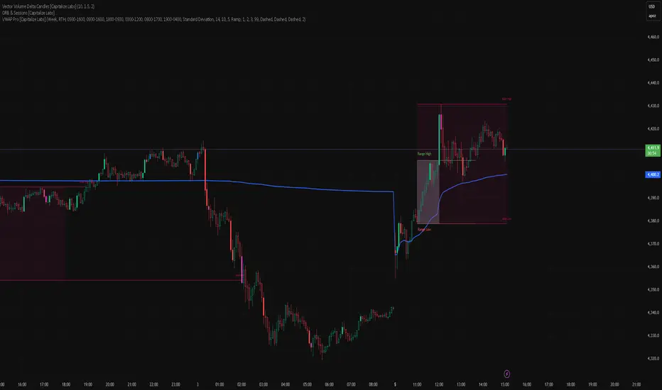 VWAP Pro [Capitalize Labs] is a volume weighted average price indicator designed to provide structured price context across Session, Weekly, and Monthly anchors. It allows users to define custom session templates and apply multiple band calculation methods to help frame price behavior relative to volume weighted levels.