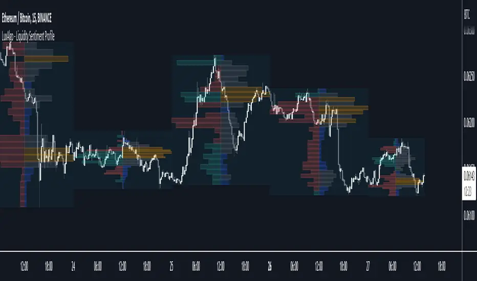 The Liquidity Sentiment Profile is an advanced charting tool that measures by combining PRICE and VOLUME data over specified anchored periods and highlights within a sequence of profiles the distribution of the liquidity and the market sentiment at specific price levels.