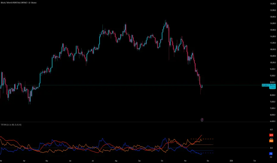 The indicator automatically identifies the most significant support and resistance levels by analyzing the last 400 candles (customizable) and detecting where DI lines have been rejected most frequently.