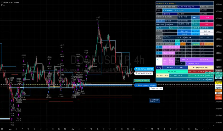Baseline Trend [BT] is a crypto-only trading strategy built on straightforward price-based logic: market direction is determined solely by the price’s position relative to a selected baseline open price. No technical indicators like RSI, MACD, or volume are used—this approach is purely focused on price action and position size manipulation.