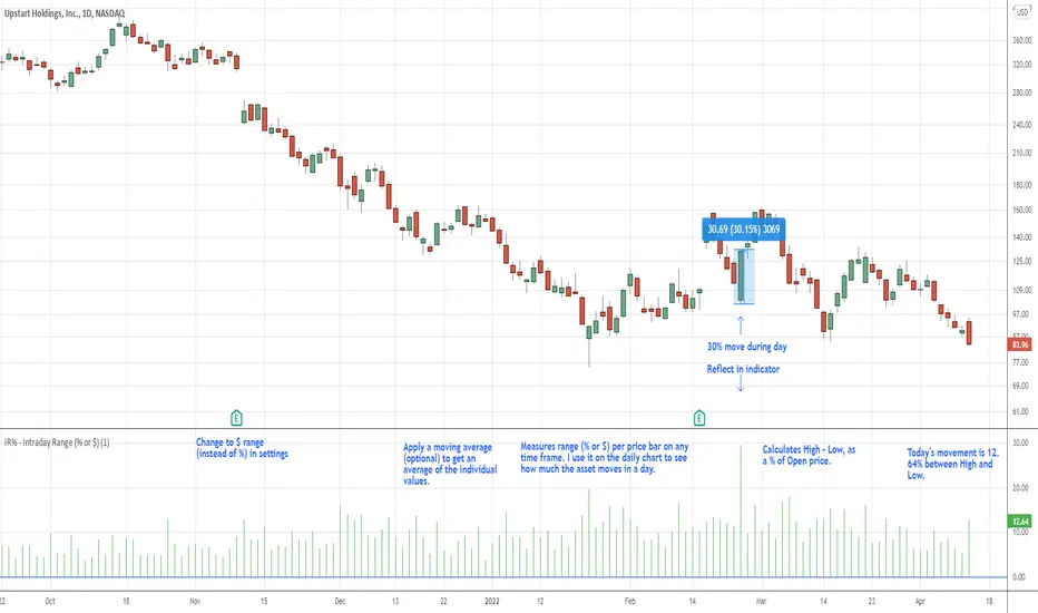 IR% - Intraday Range (% or $)