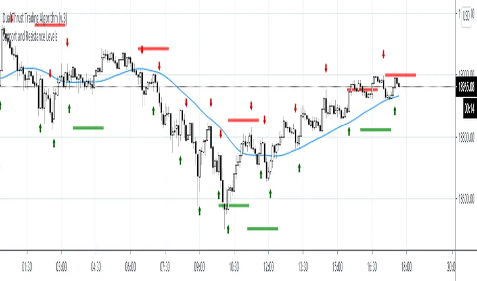 Using the logic laid out above the support&resistance indicator will show the turning points of the market in a timely manner. Depending on level of market-smoothing it will show the long term or short term turning points.