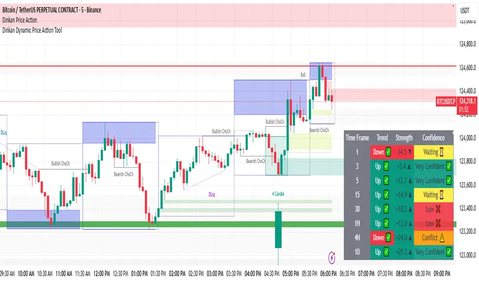 The Dinkan Price Action Tool is a complete smart money trading system designed for traders who follow institutional logic, structure shifts, and volume pressure. It detects real-time market structure, order blocks, and fair value gaps, giving you a clear edge in any market condition.
