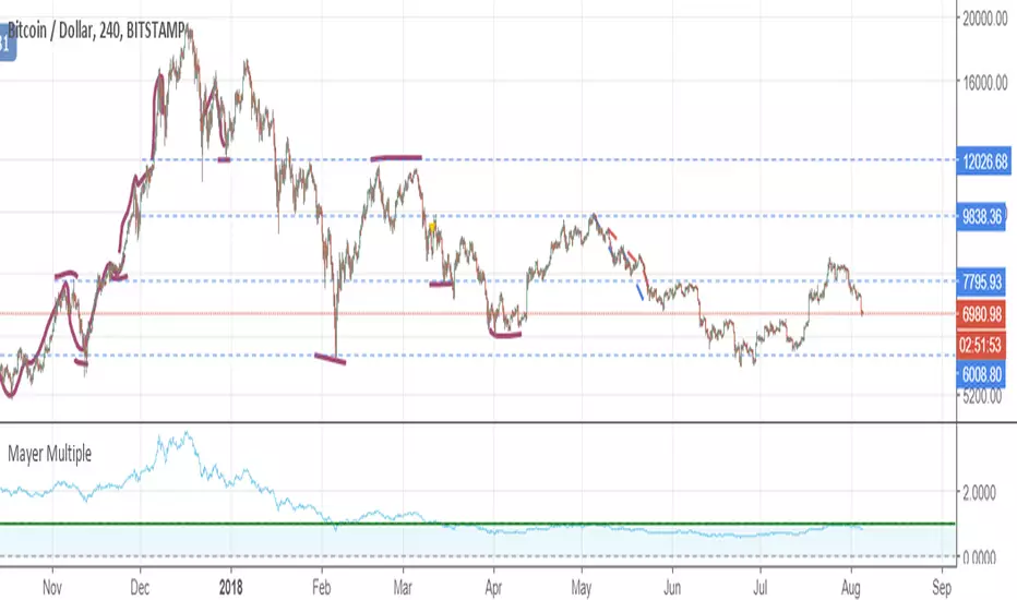 The Mayer Multiple is the current price divided by the 200 day moving average.