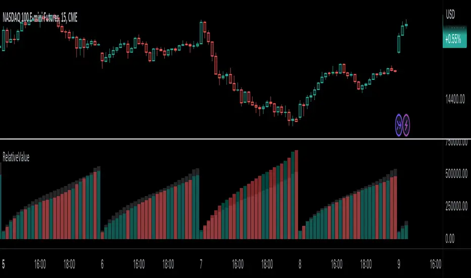 This library is a Pine Script™ programmer's tool offering the ability to compute relative values, which represent comparisons of current data points, such as volume, price, or custom indicators, with their analogous historical data points from corresponding time offsets. This approach can provide insightful perspectives into the intricate dynamics of relative market behavior over time.