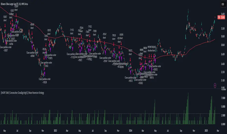 [SHORT ONLY] Consecutive Close>High[1] Mean Reversion Strategy
