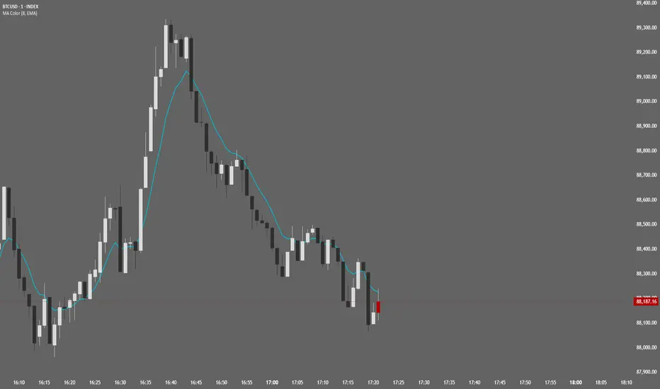 • Real-time visual clarity: The current forming candle changes color dynamically based on its position relative to the MA