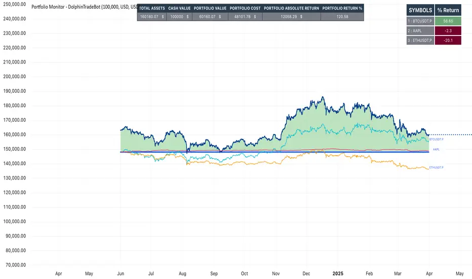 ▪️This indicator unifies the value of all your investments—whether stocks, currencies, or cryptocurrencies—in your chosen currency. This tool not only provides a clear snapshot of your overall portfolio performance but also highlights the individual growth of each asset with intuitive visualizations and an easy-to-understand performance report.