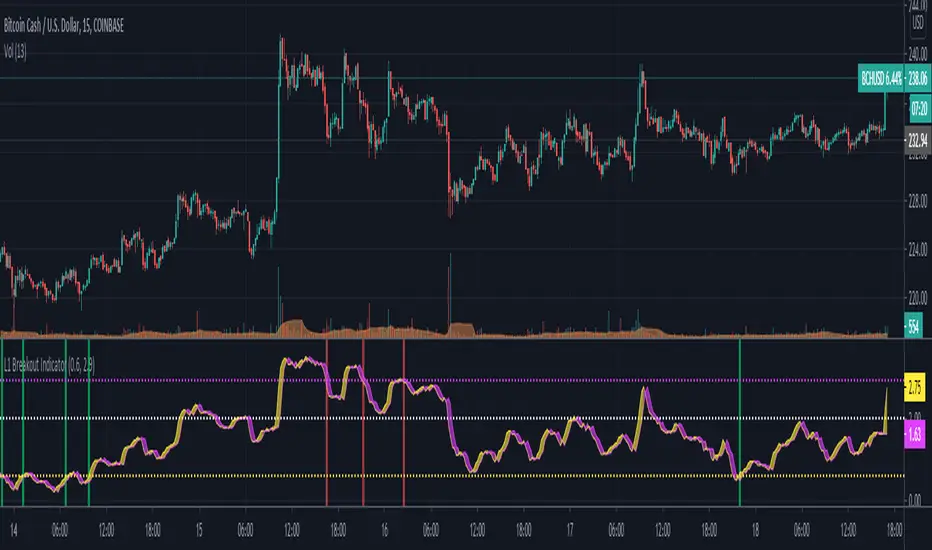L1 Breakout Indicator utilizes highest() and lowest() functions to define breakout levels. Use ema() to draw a trade line to detect the distance to breakout points. By doing that, you will know whether is overbought or oversold. Then, by applying a set of simple threshold inputs, you can locate the long and short entries points.
