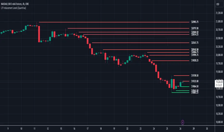 The indicator uses a lower timeframe (LTF) to identify pivot highs and pivot lows, providing a granular view of potential inducement levels.