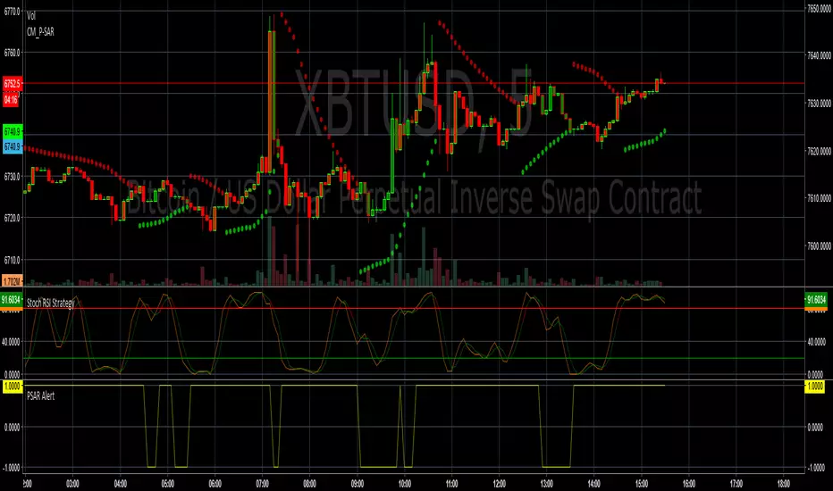 SELL- Will Sell if PSAR is red OR SRSI becomes overbought.