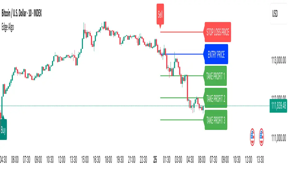 EDGE ALGO is a trend-following and momentum-based algorithm designed to deliver precise Buy and Sell signals with built-in risk management through dynamic Take Profit and Stop Loss levels.