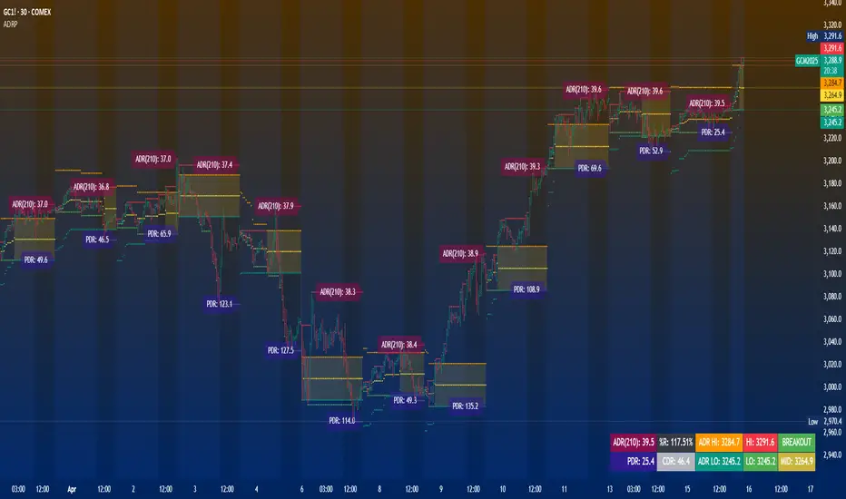 - Introduced a new plot (yellow) based on halving the projected range: Average Daily Range Mid-point or ADR Mid which is useful on ranging days.