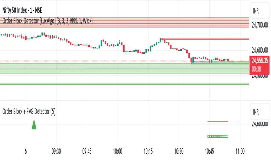 shows OBs with entry and exits and volumes. It also shows the volumes in each Order block