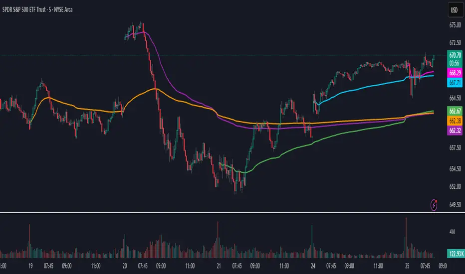 Daily AVWAPs is designed for intraday and swing traders who track institutional volume benchmarks. Instead of a single "rolling" line that resets continuously, this indicator identifies the starting timestamp of the last 5 trading sessions and draws five distinct Anchored VWAPs from those exact moments.