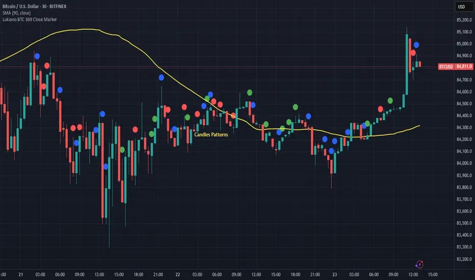 This indicator highlights candles where the closing price reduces to 3, 6, or 9 based on digital root calculation (sum of digits).