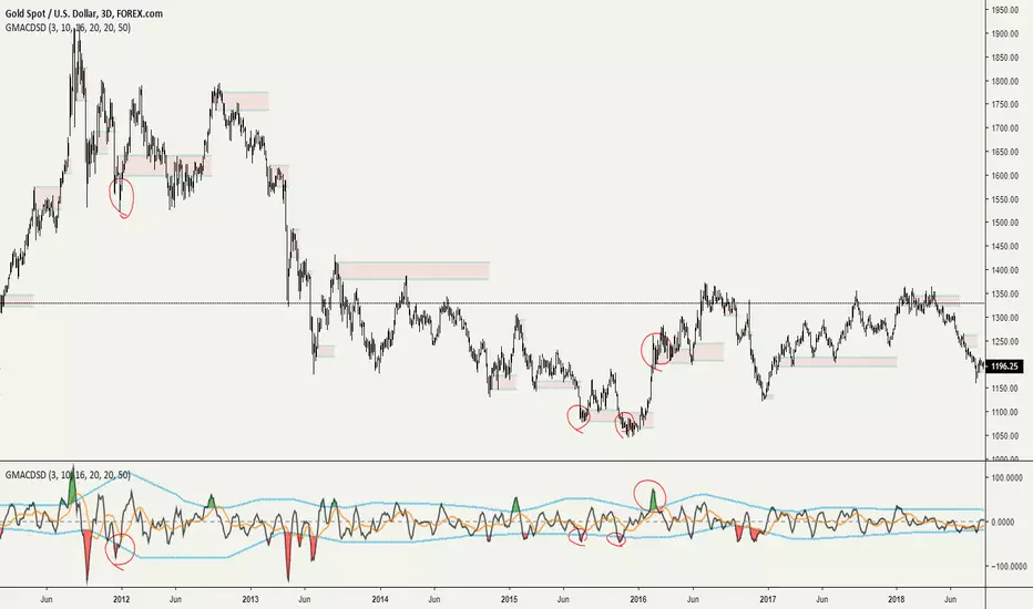 The MACD that triggers the SR zones is pictured below, with key trigger points encircled to illustrate how it works.