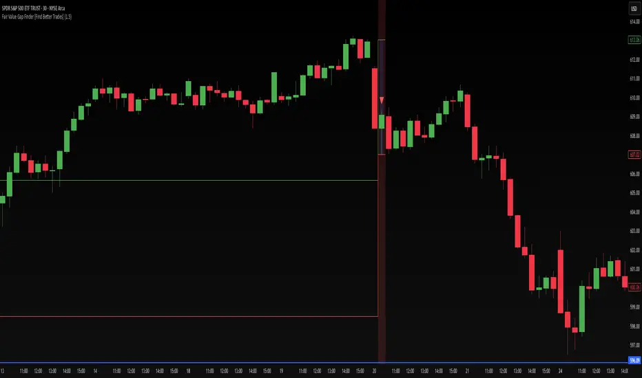 The Fair Value Gap Finder automatically detects price inefficiencies where aggressive buying or selling has created an imbalance in liquidity. These gaps, often left by institutional traders, can serve as key areas for price to revisit before continuing its trend.