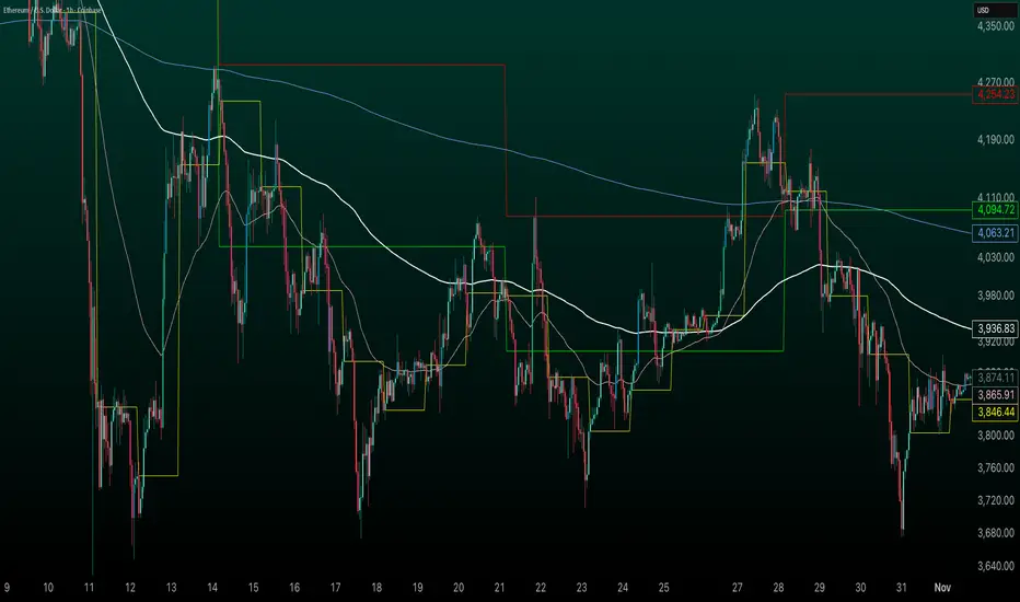 It incorporates two widely used exponential moving averages (EMAs)—the 50-period and 200-period—alongside an 800-period EMA, which effectively mirrors the 200-period EMA on the next higher timeframe. This setup provides enhanced flexibility, delivering multi-timeframe insights without the need to switch charts manually.