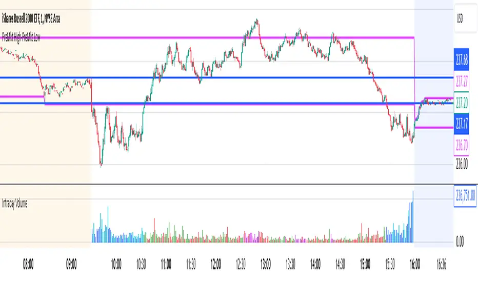 Made some updates to the intraday volume.Pre-Market High and Pre-Market Low are critical levels to trade off during the day. I added a visual representation of volume when the Close breaks out Above the Pre-Market High and when the Close breaks below the Pre-Market Low.