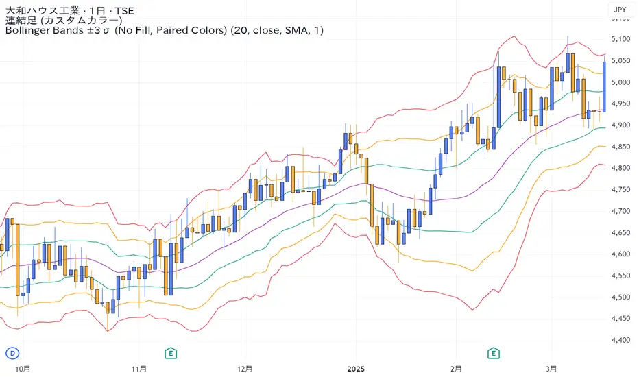 Bollinger Bands ±3σ (No Fill, Paired Colors)