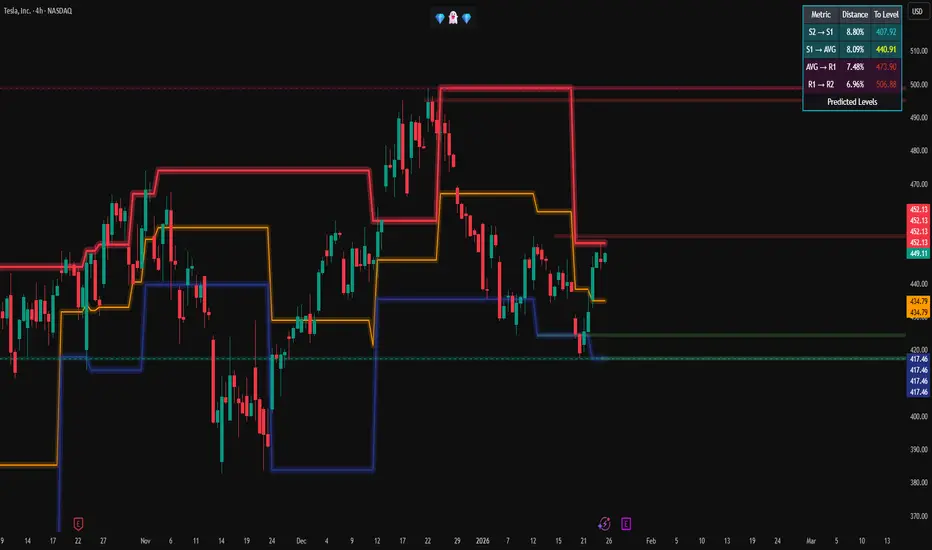 These levels are adaptive, expanding and contracting with volatility, and are intended to represent probabilistic price ranges, not fixed targets.