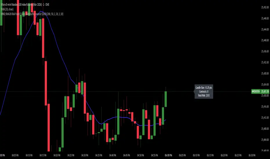 Scalping on 1 minute. measures the candle that you're entering on and tells you how many contracts needed to hit desired risk.