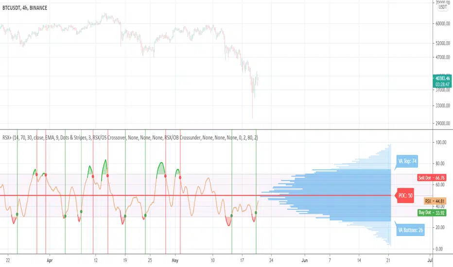 It enhances Jurik's original RSX by introducing a Values Distribution Profile, Point of Control (POC), and Value Area visualization — transforming a traditional oscillator into a statistically guided market sentiment tool.