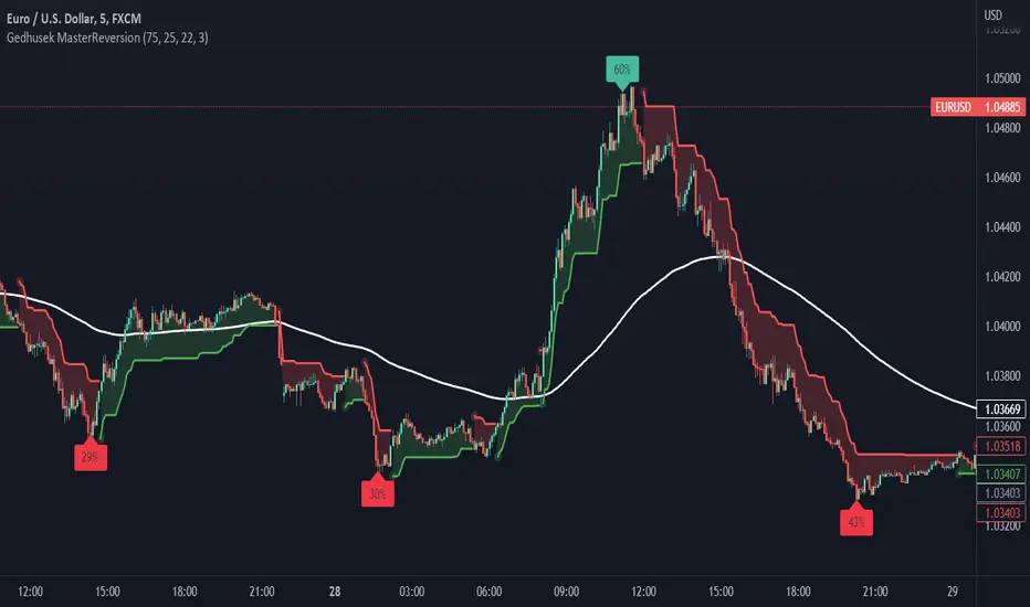 The main idea behind this tool is that the price can be away from moving average, but cant stay that way forever. Therefore its convenient to know when the reversion part might happen