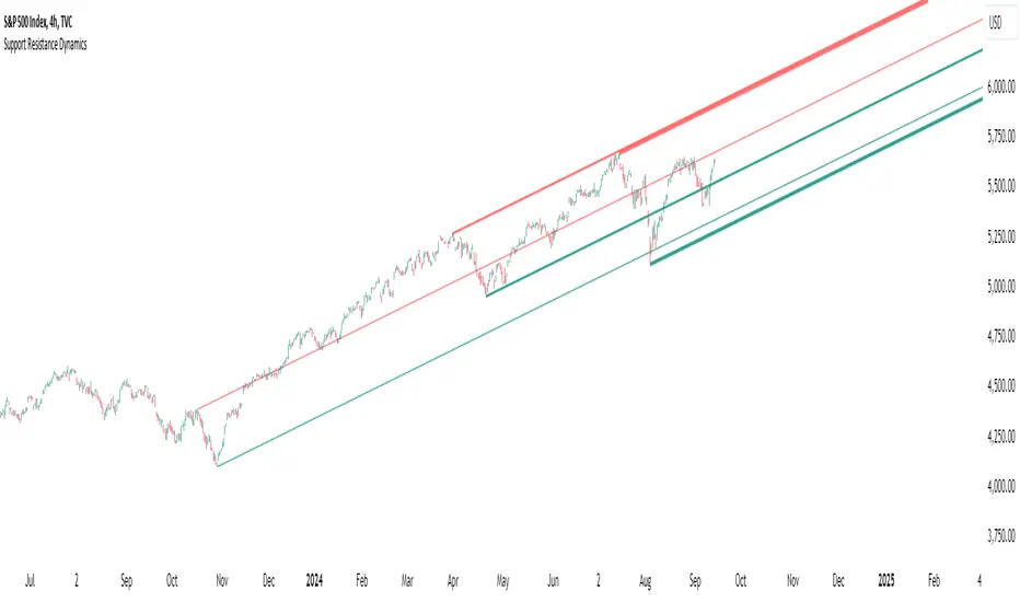 The Support Resistance Dynamics indicator is an advanced technical analysis tool designed to identify and visualize key support and resistance levels in real-time. This innovative indicator stands out from traditional support and resistance tools by employing a dynamic approach that adapts to market conditions.