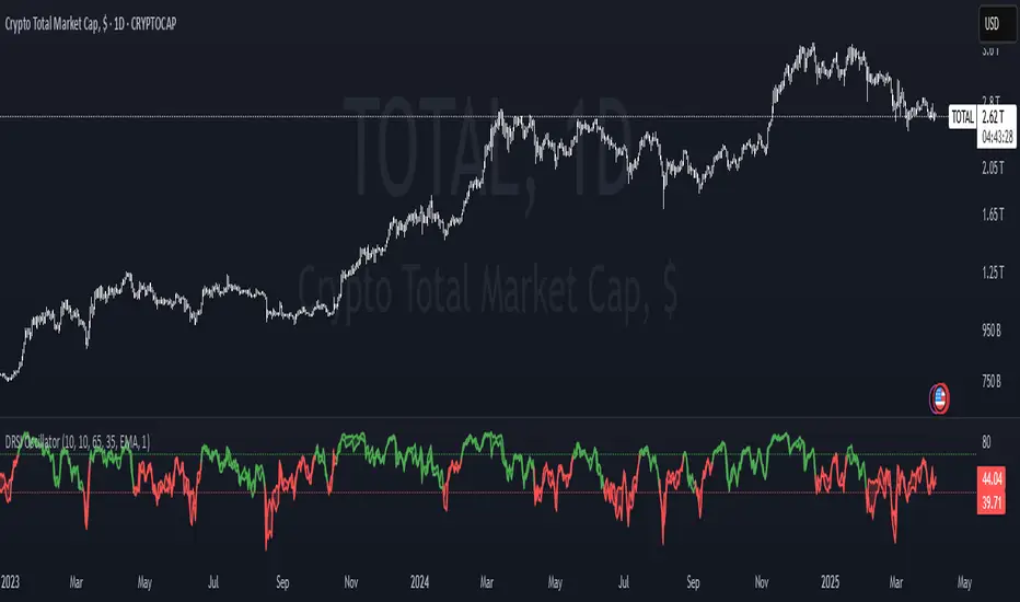The DRSI Oscillator is a tool that has huge flexibility (due to tons of settings that base RSI doesnt, like trend treshholds), and is smoother allowing traders and investors to get high quality or high speed signals, allowing great entries and exits