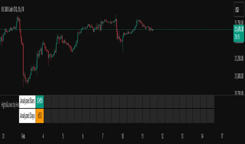 - The indicator scans historical price data directly from the TradingView chart to detect the hour at which daily highs and daily lows occur.