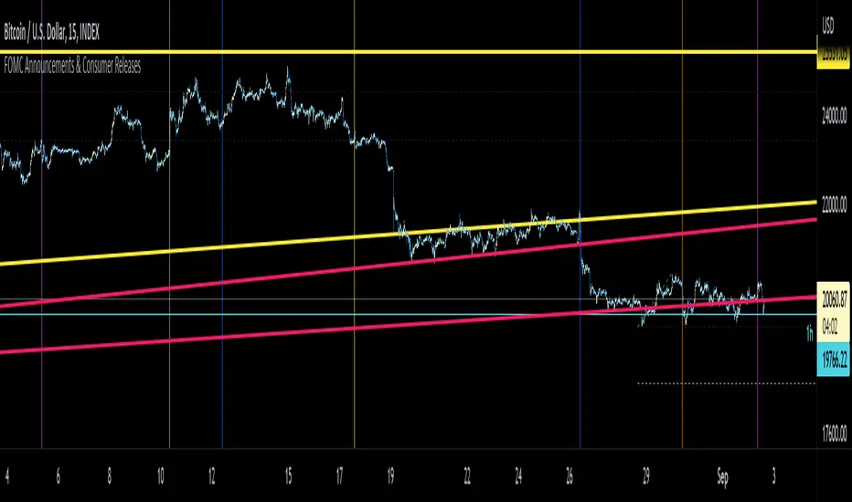This indicator plots vertical lines at the scheduled times of US Federal Reserve's FOMC Meeting Announcements. Usually, that time or the 24 hours before and after could see big moves in markets. You can change those dates and times in the settings, and could use the indicator option "Add this indicator to entire layout" if you want to easily reflect that across all panes of a layout. Those lines will show on any symbol you switch to, saving you time and effort of drawing them manually.