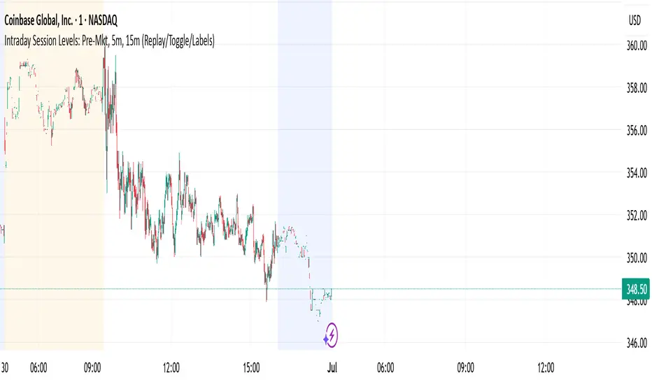 Intraday Session Levels: Pre-Mkt, 5m, 15m (Replay/Toggle/Labels)