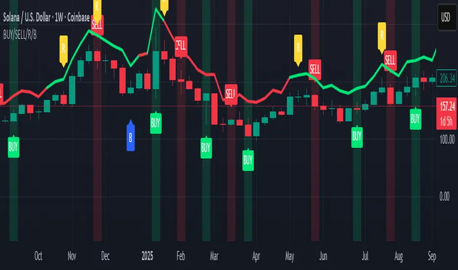 BUY / SELL – Generated from a higher-timeframe StochRSI crossover.