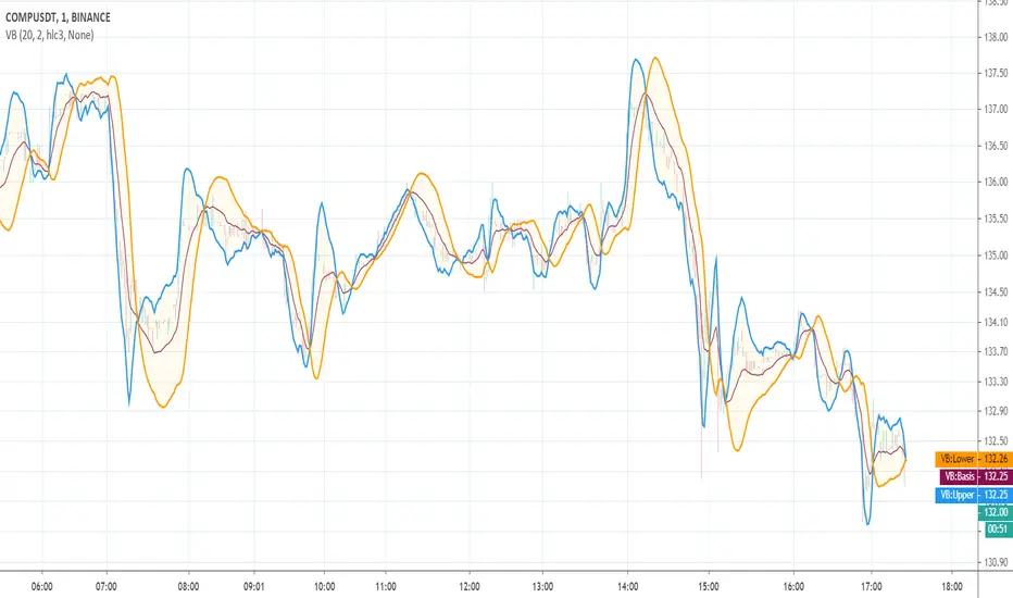 A slighty modified version of Better Bollinger Bands. The idea of the experiment was to do a thing like the well-known Vortex Indicator, but an overlay: