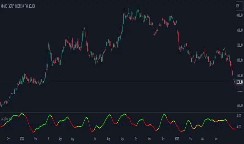 Money flow an indexed value-based price and volume for the specified input length (lookback period). In summary, a momentum indicator that attempt to measure the flow of money (identify buying/selling pressure) through the asset within a specified period of time. MFI will oscillate between 0 to 100, oftentimes comprehend the analysis with oversold (20) or overbought (80) level, and a divergence that spotted to signaling a further change in trend/direction. As similar to many other indicators that use length (commonly a fixed value) as an input parameter, can be optimized by applied an adaptive filter (Ehlers), to solve the measuring cycle period. In this indicator, the adaptive measure of dominant cycle as an input parameter for the lookback period/n, will be applied to the money flow index.