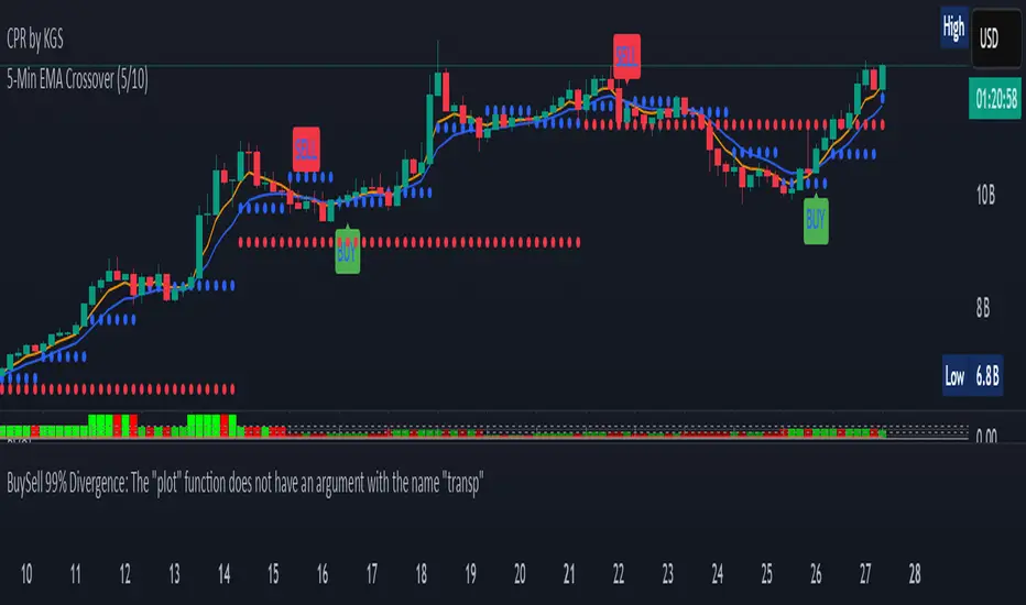 The 5-Minute EMA Crossover (5/10) strategy is a technical trading approach that uses two Exponential Moving Averages (EMAs) on a 5-minute chart to identify potential buy and sell signals based on trend shifts. Here's a description: