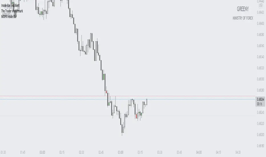 Inside Bar Indicator, shows when a candle is contained within the previous candle.