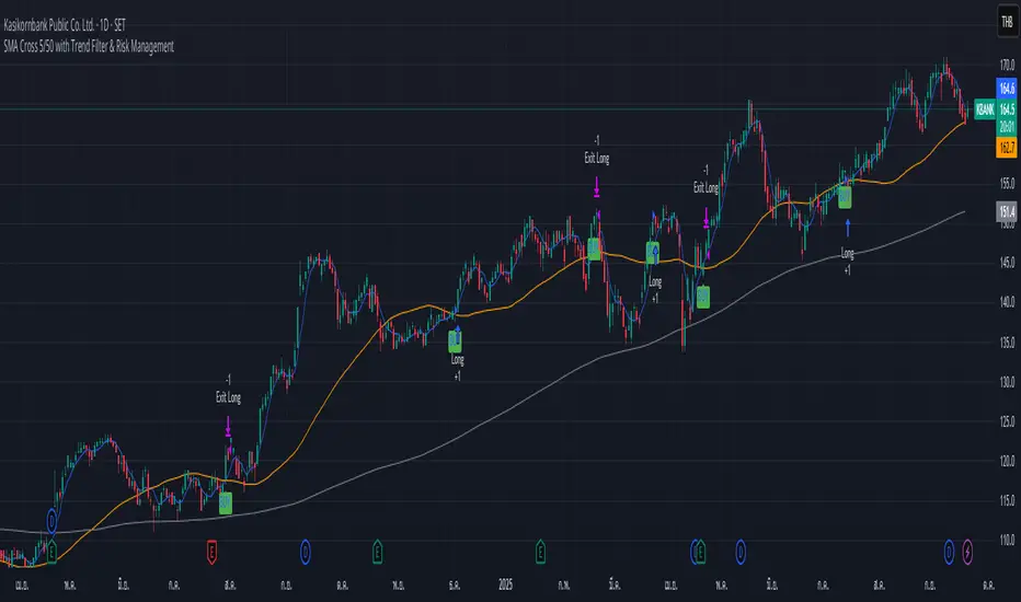 SMA Cross 5/50 with Trend Filter & Risk Management by JuggiD