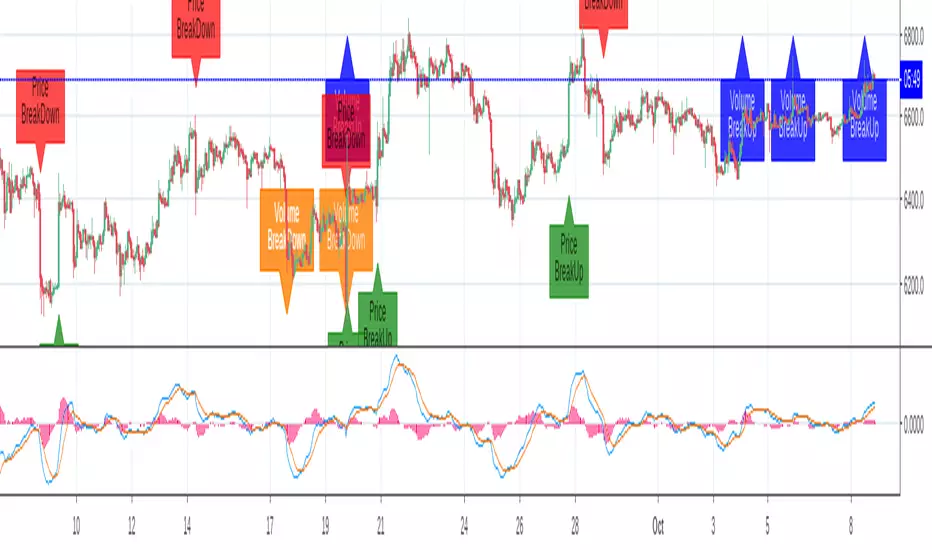 1. Since a breakout of price or volume often means the start of a trend, this indicator alerts and displays a label when there is a breakout in price or volume.