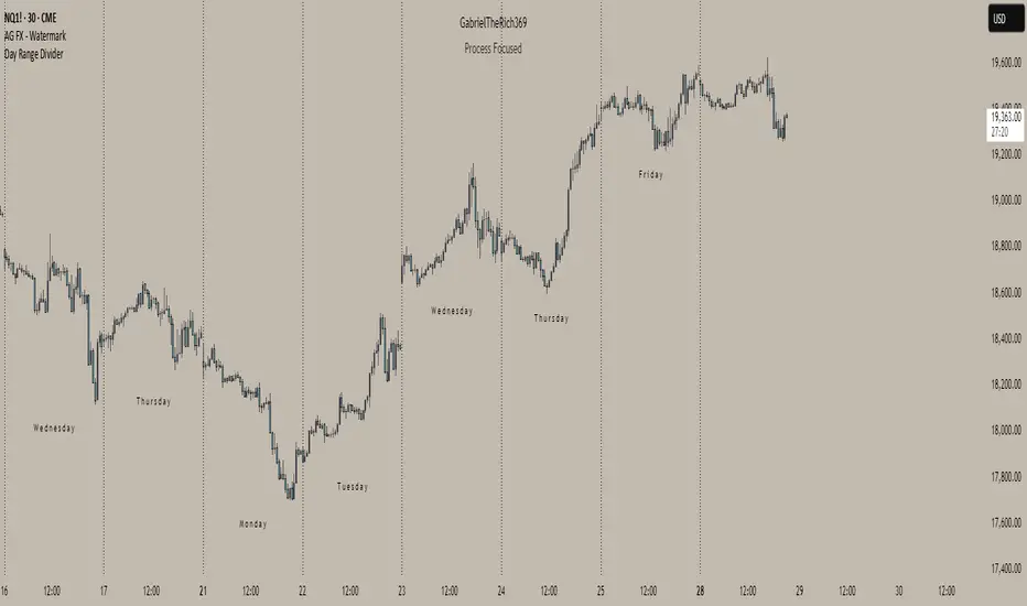 The indicator divides the chart into Israeli trading days, starting at one o’clock after midnight and ending a minute before the next midnight, marking each day’s open with a thin vertical line whose color and width you can choose. A label with the day’s name (in Hebrew) can appear on the very first bar of the session, while another label is placed midway through the previous day, beneath the candles at a fixed distance from the bottom so it doesn’t obscure price. You can adjust the label’s color, size, and letter spacing, customize the line style, and decide whether to show the early-session label. The indicator ignores Saturday and Sunday, works on any intraday timeframe, never repaints after plotting, and lets you quickly spot daily sequences and time-of-day patterns for market analysis.
