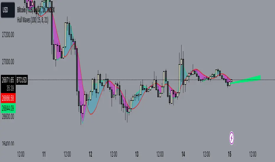 The Hull Waves indicator is based on the Hull Moving Averages (HMA), which are special moving averages that stand out for their ability to filter out market noise and offer a clearer view of price trends. Compared to traditional moving averages, HMAs are more responsive yet smoother, allowing traders to capture significant price movements without getting overwhelmed by short-term fluctuations.