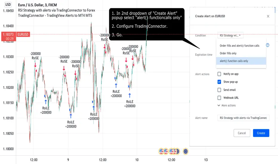 Software part of algotrading is simpler than you think. TradingView is a great place to do this actually. To present it, I'm publishing each of the default strategies you can find in Pinescript editor's "built-in" list with slight modification - I'm only adding 2 lines of code, which will trigger alerts, ready to be forwarded to your broker via TradingConnector and instantly executed there. Alerts added in this script: 12 and 17.