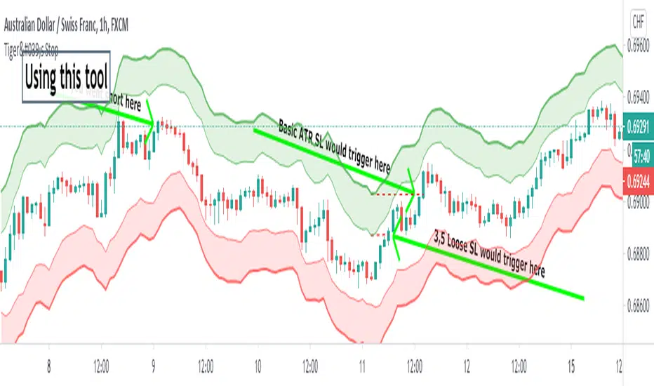 Trading is a lot about risk management too. I created this script to help with setting and moving a proper stop-loss. It plots an area that is a result of adding and subtracting both average true range and something I call "false range".