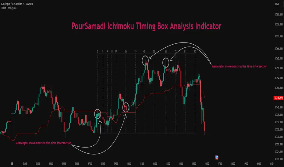 This indicator is built precisely upon that philosophy. Following the timing methodology introduced by M.A. Poursamadi, the focus shifts away from price signals and line crossovers toward identifying flat periods on Kijun-sen (period 52) as time anchors.
