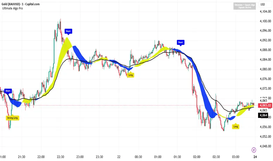 Ultimate Algo Pro एक multi-layered market analysis system है जो price behavior, volatility structure और trend dynamics को combine करके साफ़ तथा actionable trading signals प्रदान करता है।