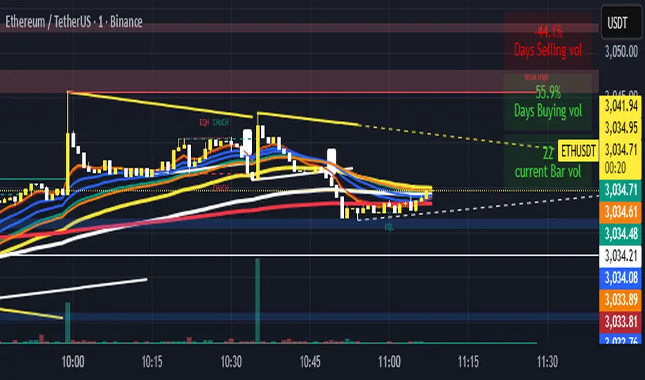 This indicator plots six customizable Exponential Moving Averages (EMA 1 to EMA 6) designed to help traders quickly identify market direction, trend strength, and dynamic support/resistance levels.