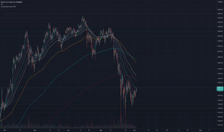 The reason for creating this indicator is because I was looking for Daily EMAs, but wanted to view the chart in a different time period without the EMA lines themselves changing. In addition, I wanted to view ample EMAs at once, and have the ability to change their length as I see fit.