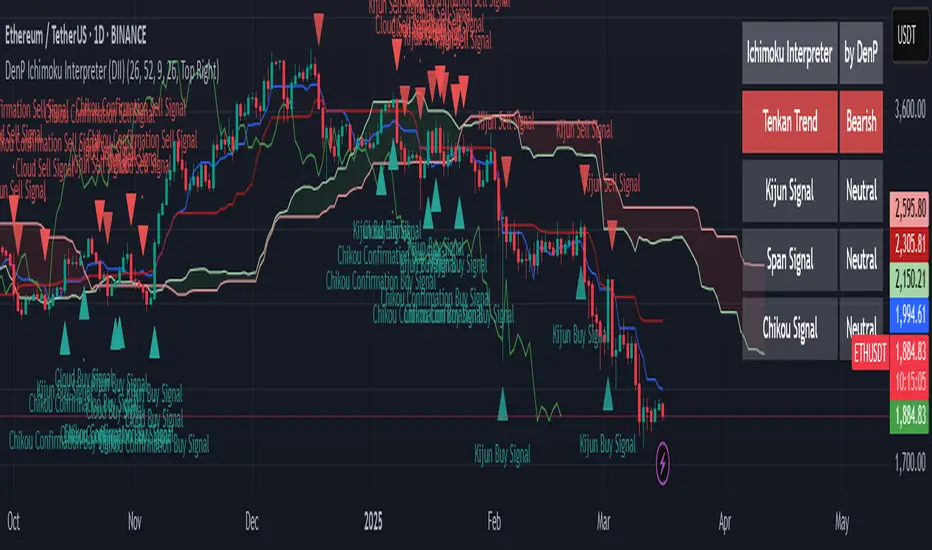 A simple indicator using Ishimoku as a basis, giving entry and exit signals.